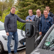 Gemeinsam smart realisiert, das SMARTcharge Lastmanagement bei Stenkamp in Borken-Burlo. Vlnr. Thorsten Reßmann, Bernd Stenkamp (beide Stenkamp Logistik), Andre Remmelt (Elektro Niehoff GmbH), Christian Deppermann, Dominik Sosna (beide Weidmüller), Klaus Pflüger (Stenkamp Logistik). Foto Elektro Niehoff
